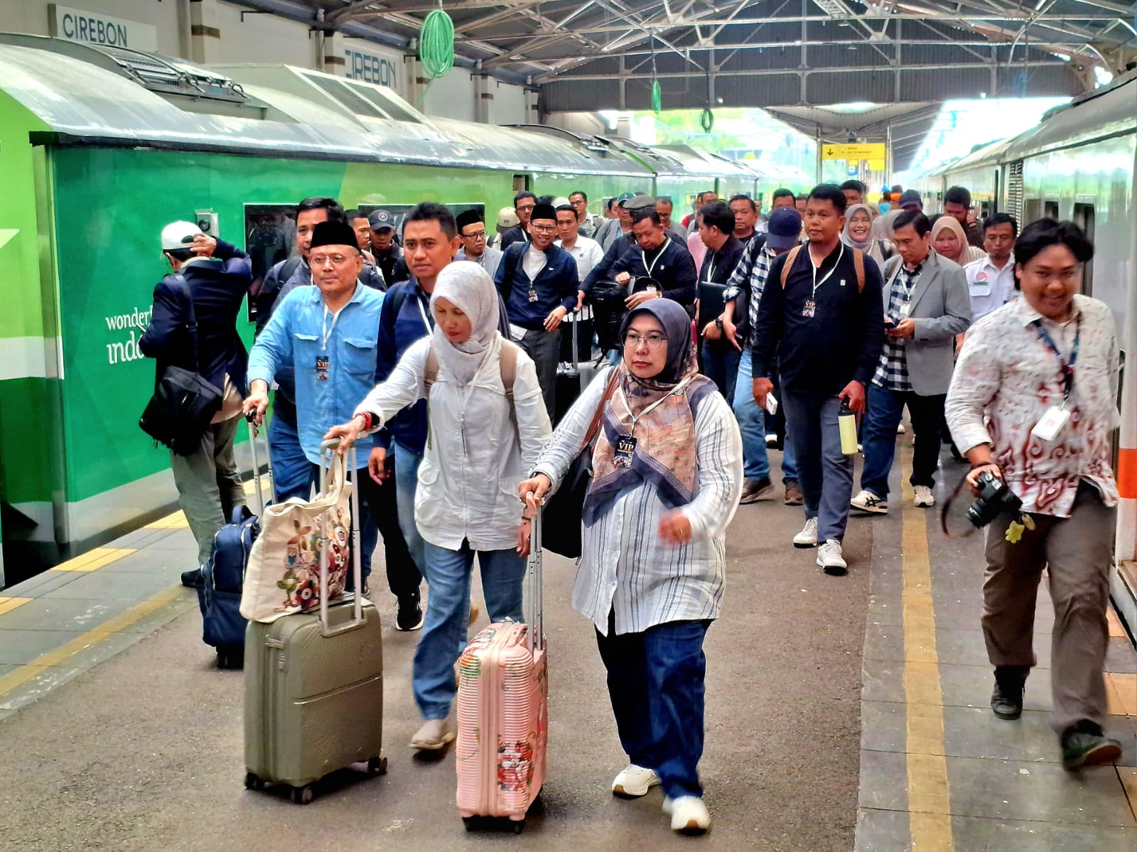 Memasuki hari ke-18 pelayanan angkutan Nataru, Minggu (4/1/2026), volume pelanggan yang berangkat dari berbagai stasiun di wilayah Daop 3 Cirebon mengalami lonjakan. Mayoritas pelanggan menuju sejumlah kota besar seperti Jakarta dan sekitarnya, Semarang, Solo, Yogyakarta, hingga Surabaya.
