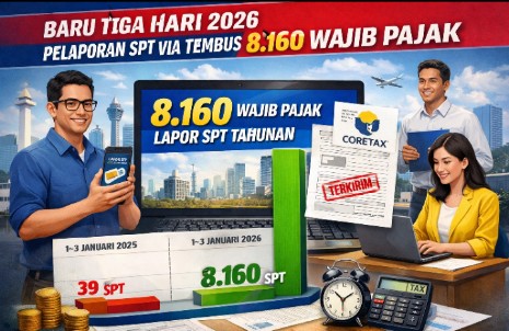 Jakarta, C— Direktorat Jenderal Pajak (DJP) mencatat lonjakan signifikan pelaporan Surat Pemberitahuan (SPT) Tahunan melalui sistem Coretax pada awal 2026. Hingga Jumat (3/1/2026) pukul 10.06 WIB, sebanyak 8.160 Wajib Pajak telah menyampaikan SPT Tahunan Tahun Pajak 2025.