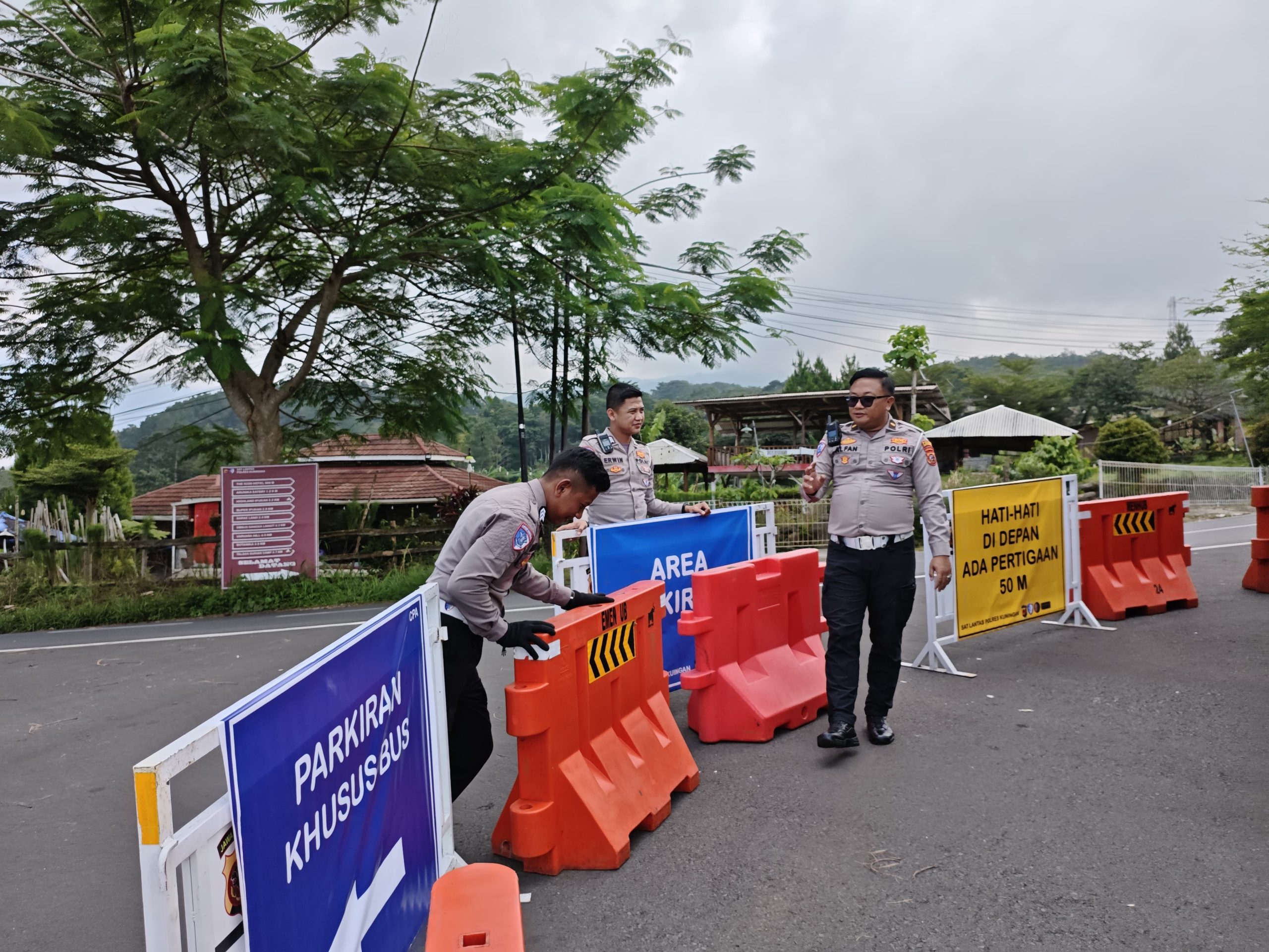 KUNINGAN,- Jelang libur hari raya idul Fitri 2026 akan segera tiba, Satuan Lalu Lintas (Satlantas) Polres Kuningan mulai melakukan pemasangan berbagai rambu lalu lintas dan perlengkapan keselamatan jalan di sejumlah titik rawan guna meningkatkan keselamatan serta ketertiban pengguna jalan. Kegiatan tersebut dipimpin oleh Unit Keamanan dan Keselamatan (Kamsel) Satlantas Polres Kuningan dengan melakukan penempatan sejumlah sarana keselamatan lalu lintas, di antaranya 57 unit water barrier, 150 buah tolo-tolo, 92 rambu penunjuk arah portable, serta 30 spanduk himbauan keselamatan berlalu lintas.